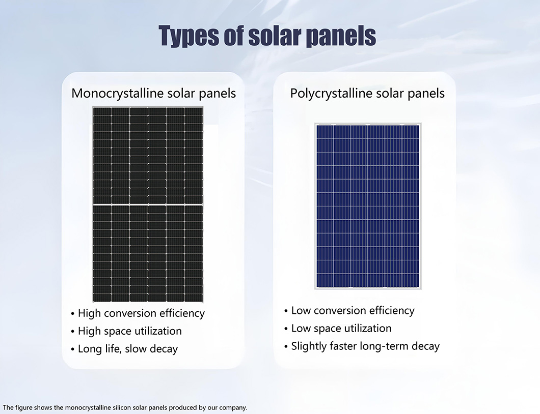 Solar panels are the heart of a PV system, responsible for converting sunlight into direct current (DC) electricity through the photovoltaic effect. Most panels are made of monocrystalline or polycrystalline silicon cells.